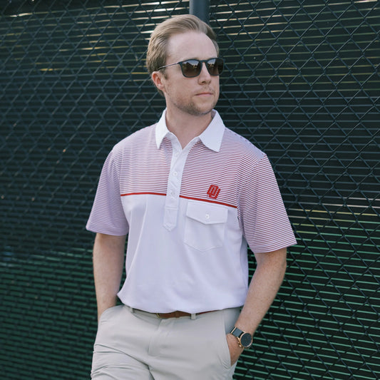 Turbo Logo Mini Stripe Polo - Crimson/White
