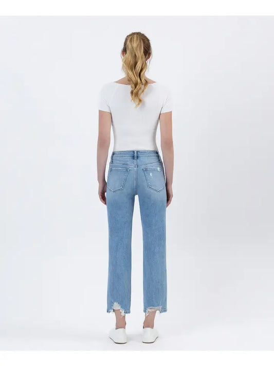 • High Rise Distressed Hem Crop Straight Jeans - Boatload