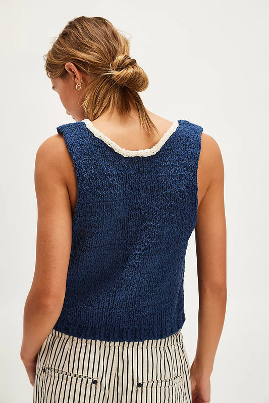 Sicily Reversible Sweater Shell - Dark Denim Combo