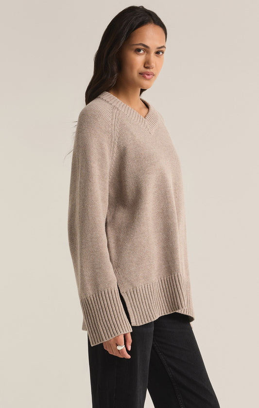 Boulevard V-Neck Sweater - Heather Taupe