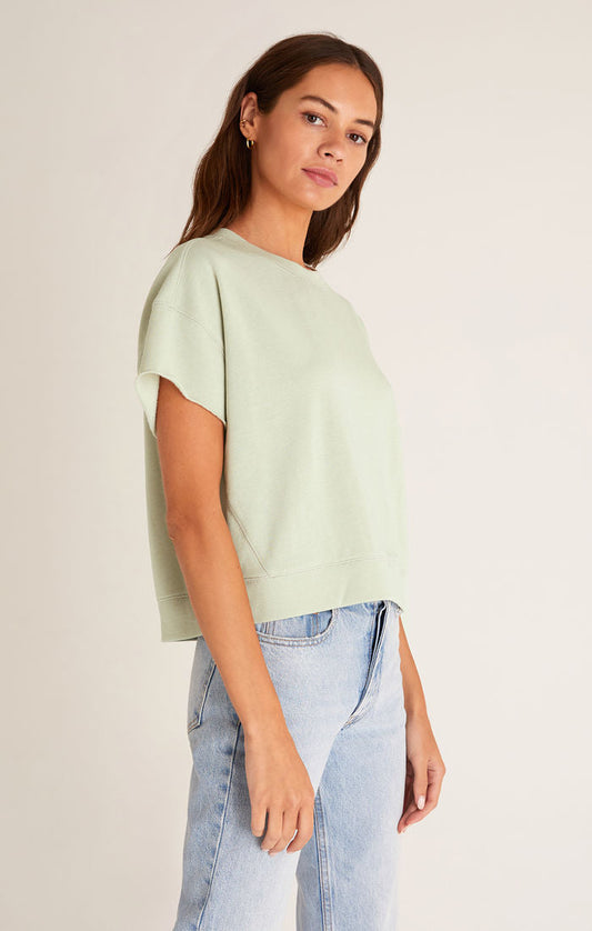 Adah Fleece Short Sleeve Top - Soft Sage