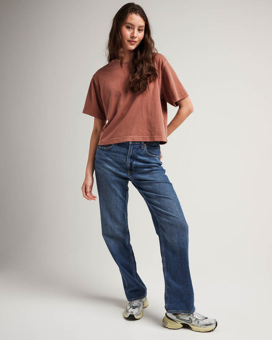 Sold outWomen's Relaxed Crop Tee - Burgundy