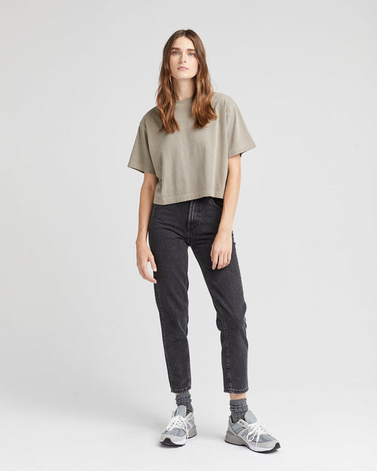 Sold outWomen's Relaxed Crop Tee - Warm Grey