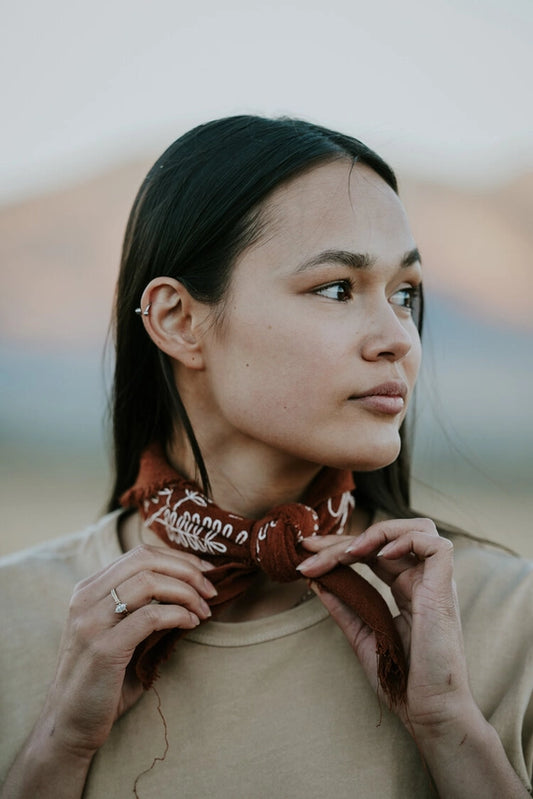 Terra Cotta Classic Print Naturally Dyed Bandana (Black)