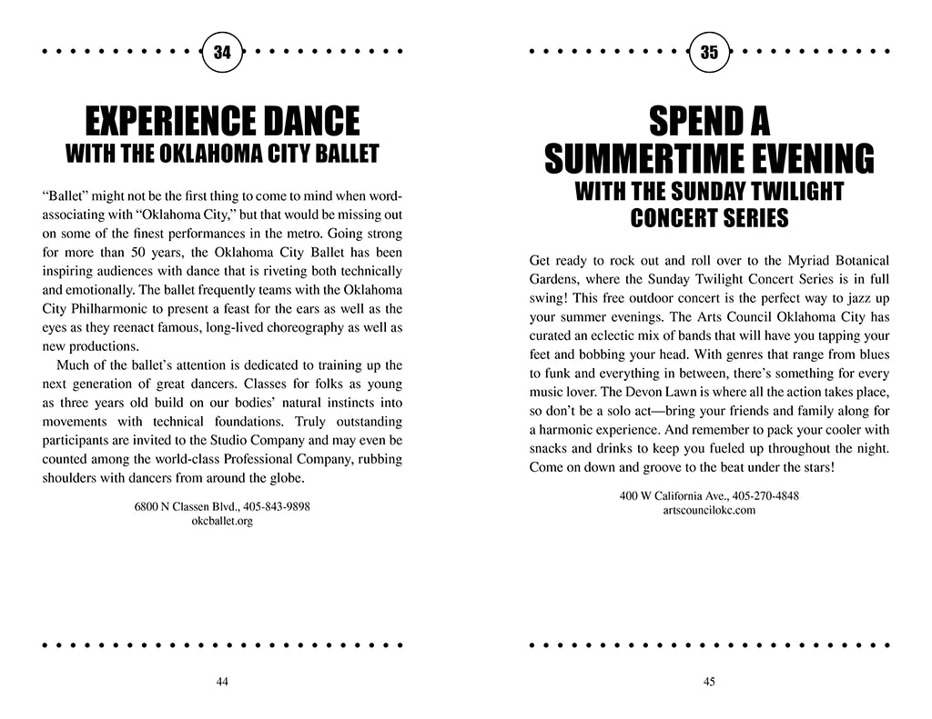 In 100 Things to Do in Oklahoma City Before You Die, you’ll get the best tips from local researcher and ghost-tour guide Jeff Provine and journalist Dennis Spielman on where to meet Sir Indiana Bones the Museum Cat, where to hunt for fairy houses in the park, and where to play retro video games while sipping signature cocktails. There’s always something new to do in OKC!