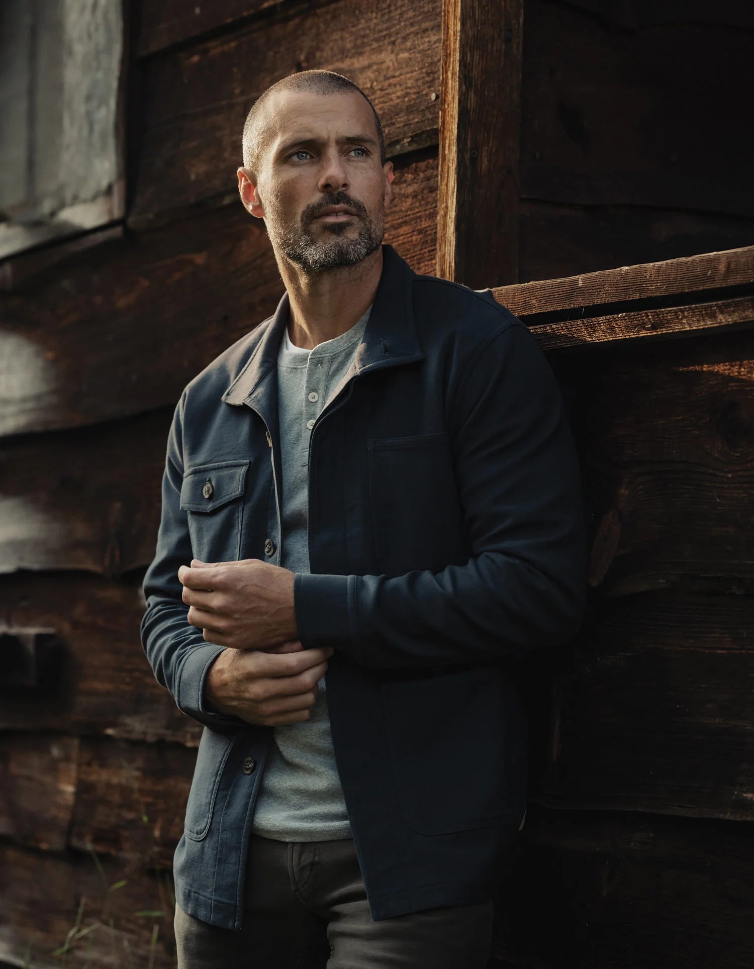 Comfort meets getting down to business in this unconventional take on the classic chore jacket. Sturdy and softly structured like the original, hopelessly soft and comfortable like your favorite pair of sweats. Pairs well with crew neck tees and getting stuff done.