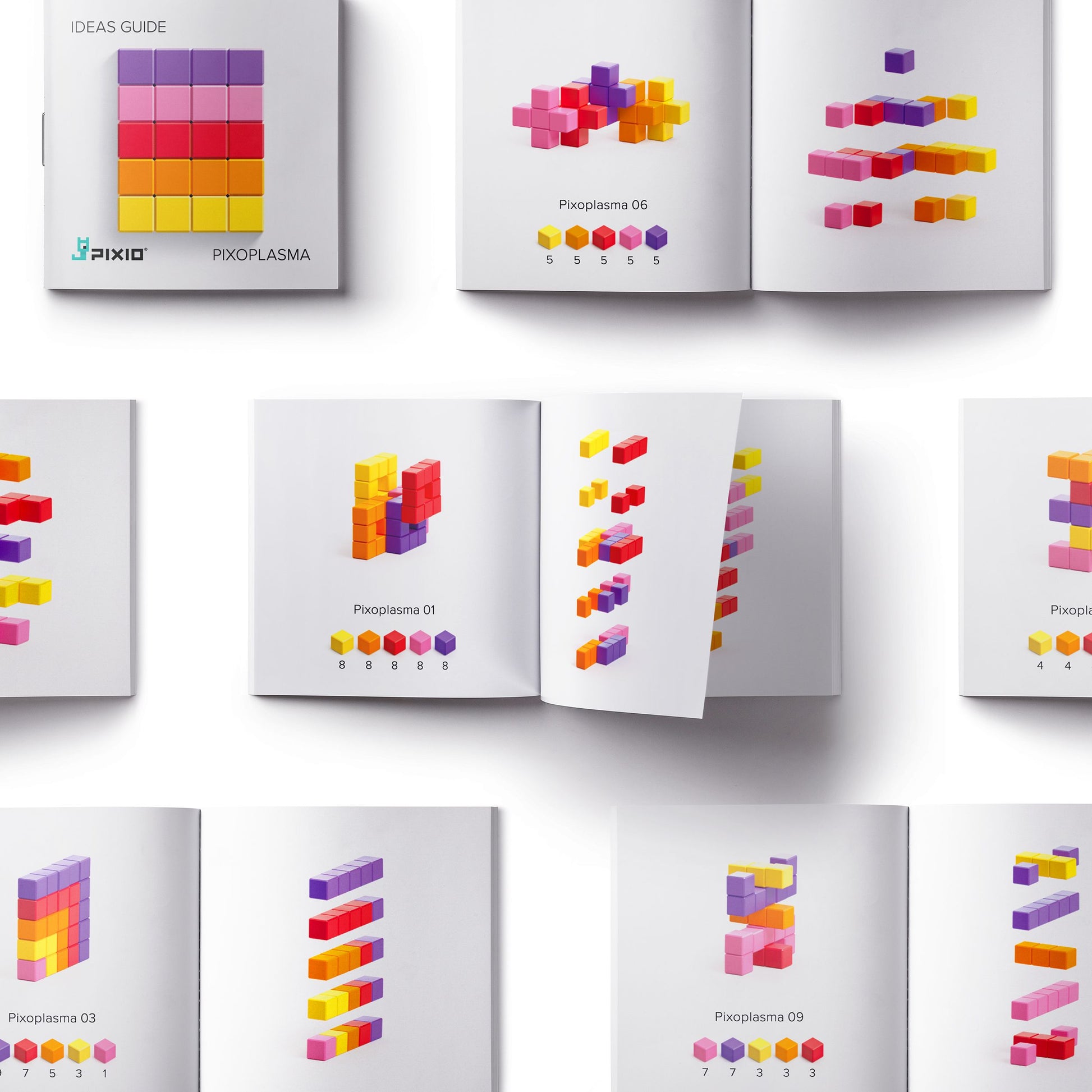 PIXIO® PIXOPLASMА: the five elementary color particles. The universe and everything in it are made up of charged particles — so, essentially, we all live in an infinite magnetic block set. PIXOPLASMА includes five colors: yellow, orange, red, pink, and violet. Like the particles that make up our universe, these colors attract one another to create cosmic fusions. Model the abstract 3D objects emitted by the charged particles of your mind. Extend your color spectrum to infinity by adding in PIXIO blocks from other PIXIO® ABSTRACT SERIES sets. Take the universe by storm with color!