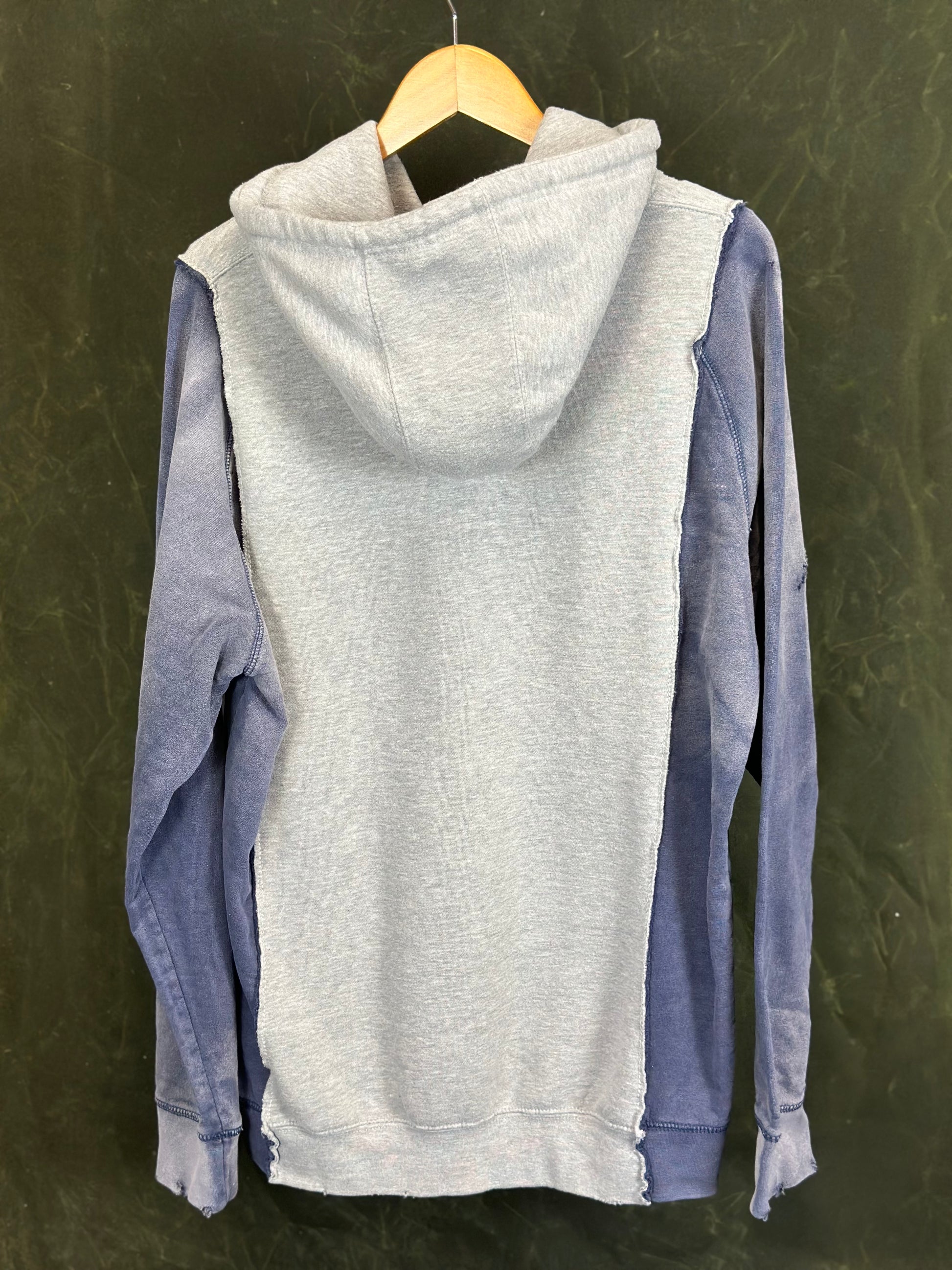 The Circles Hoodie is a part of our one of a kind series of hoodies made right here at Blue Seven...and in our driveways....and with a needle and thread while watching The Office....well you get the point. We've put a lot of work in to each one of these to make sure each one is special and completely unique. With distressing and repairs, stencils, sandpaper, bleach, patches and the cutting up of some of our favorite old pieces to incorporate into the hoodies you'd never guess someone didn't wear it every day for 10 years to break it in just for you.
