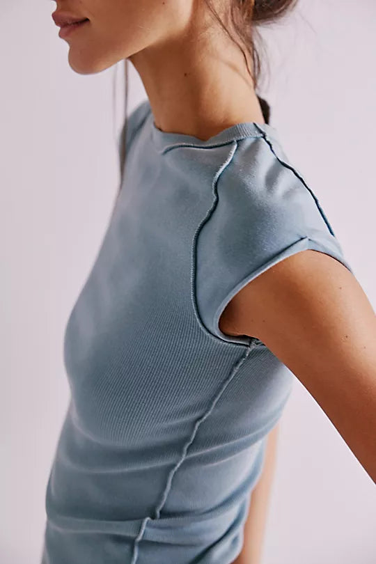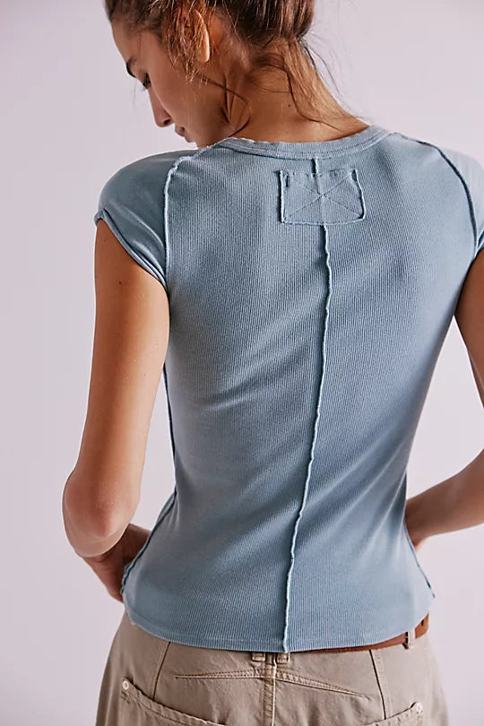 Your new favorite timeless tee, featured in a soft, ribbed knit fabrication and slim-fitting silhouette with raised seam detailing and cap-inspired sleeves.