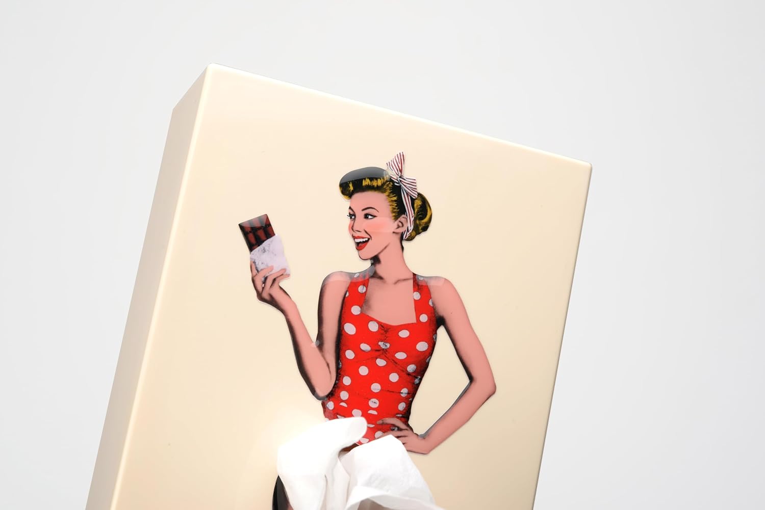 Make someone smile with this Flirty Skirt Tissue Box featuring vintage pop art! Not just any box, this sassy gift features a unique and fun flying skirt design. It's sure to brighten up any space and elicit a few giggles. Get ready for compliments and tissues on demand!