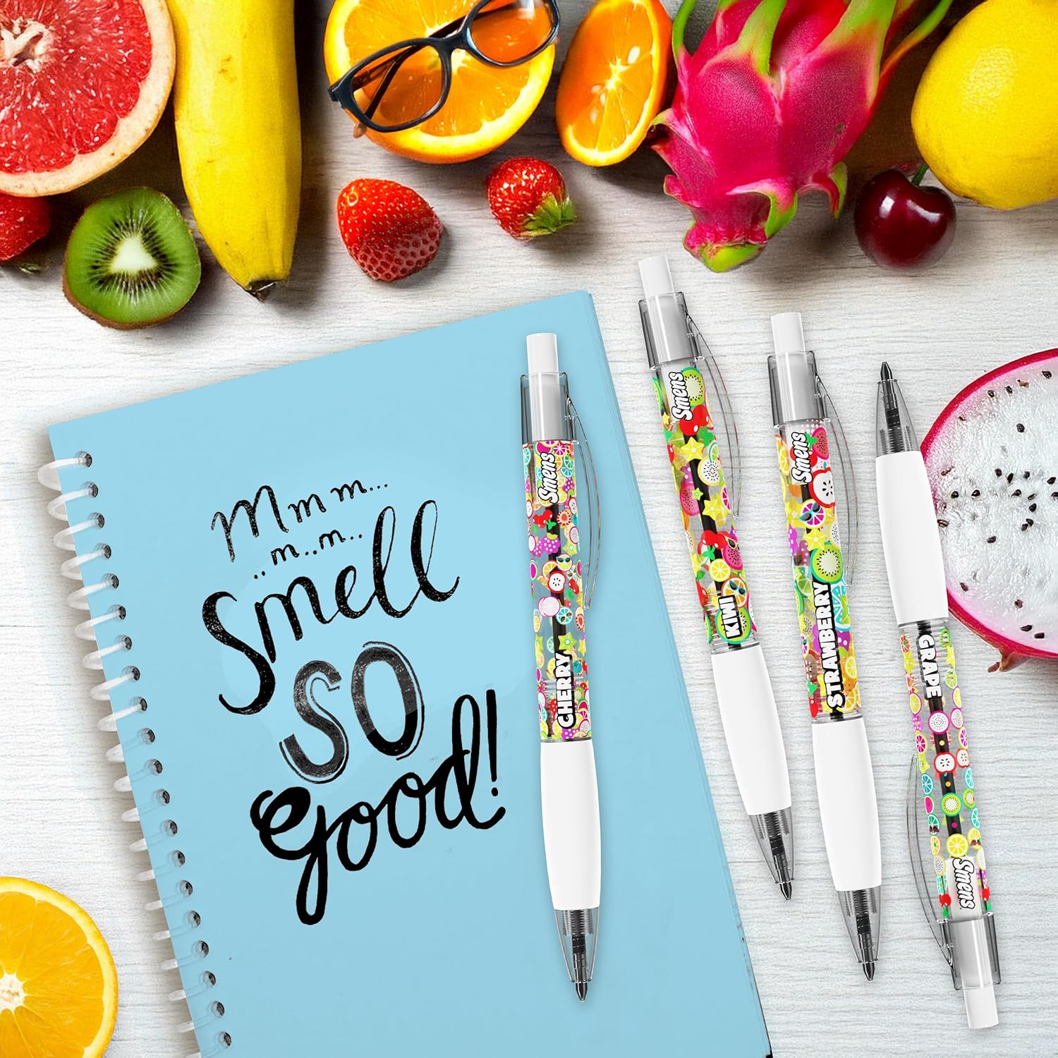 Add a zest of fun to your writing with our Fruit Punch scented pens that will turn ordinary notes, doodles, and journals into a berry delightful experience. Styled with vibrant colors and scents like strawberry, kiwi, and citrus, these pens make writing more a-peel-ing for kids, students, and anyone who loves a little extra joy in their day. Perfect for school, work, or gifting. Our Fruit Punch scented pens bring creativity to life—one deliciously scented word at a time! What’s in the Pack?