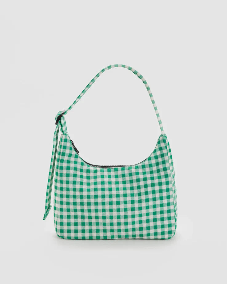 Mini Nylon Shoulder Bag - Green Gingham