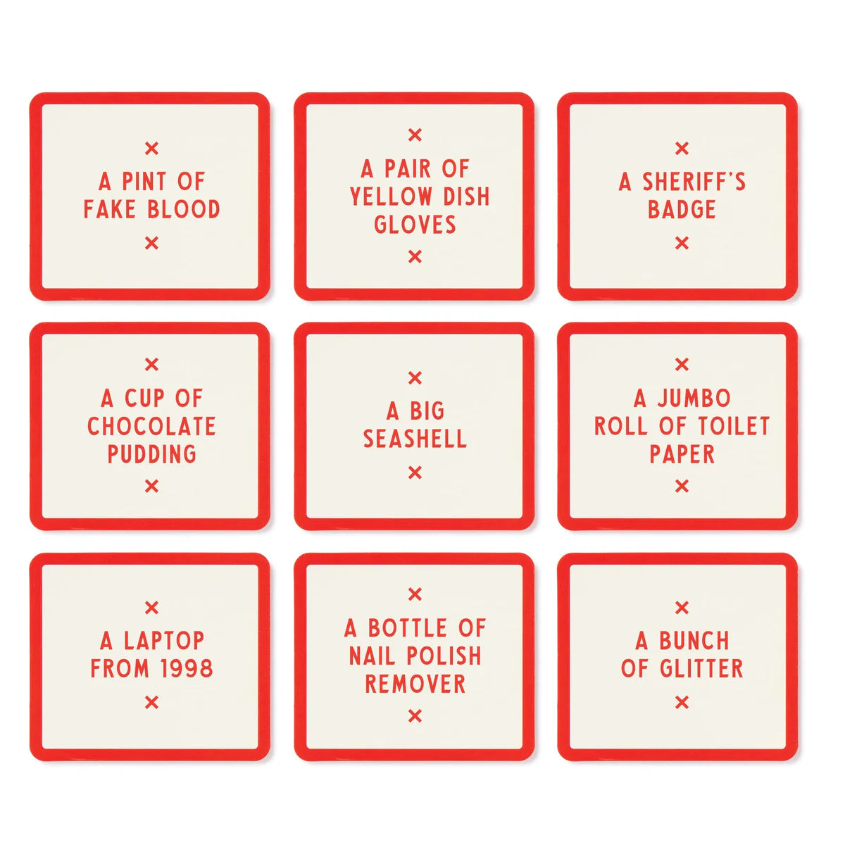 - Includes 300 double-sided ‘object’ cards and 50 double-sided murder-y ‘scenario’ cards