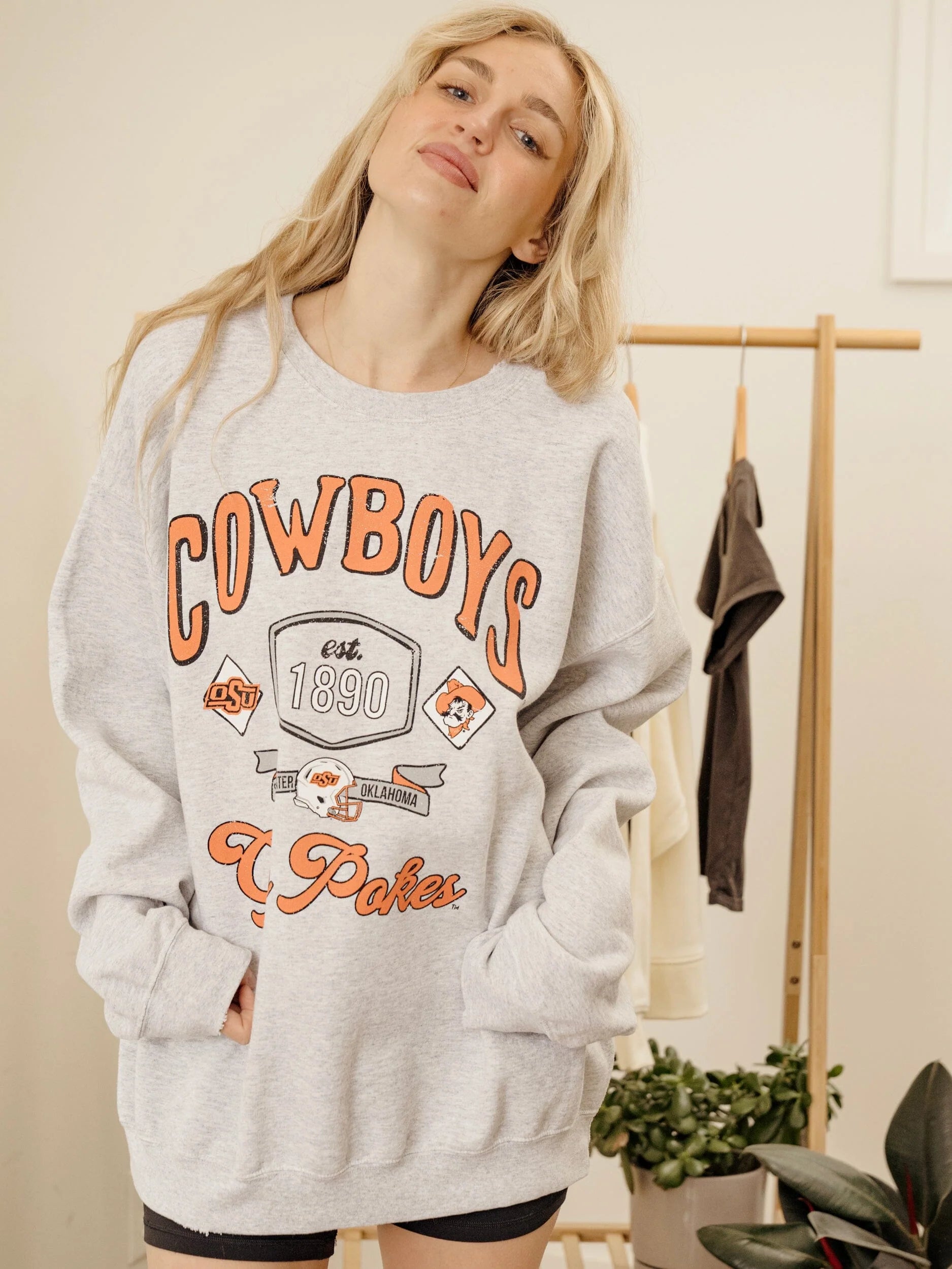 These 50/50 Preshrunk Cotton/Polyester thrifted sweatshirts are meaningfully distressed and officially licensed. Each piece is one of a kind, and colors/distressing may vary from shirt to shirt.