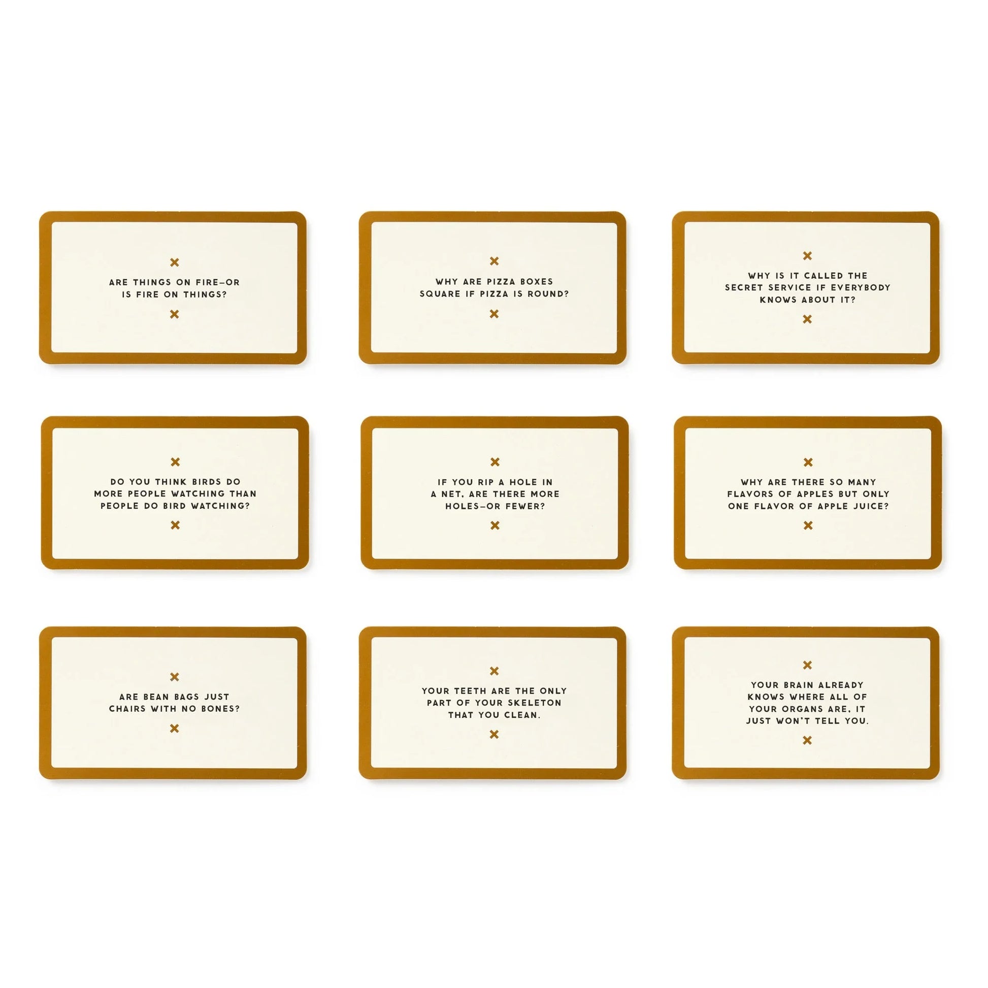 You don’t have to be high to ponder some of life’s most significant, thought-provoking questions–you know, important stuff like ‘do you think popcorn is a vegetable?’ So inside you’ll find 200 hilarious, yet profoundly ‘deep’ topics that are actually fun to talk about. Includes 200 questions cards and some rules to turn it all into a game (if you want to, that is).