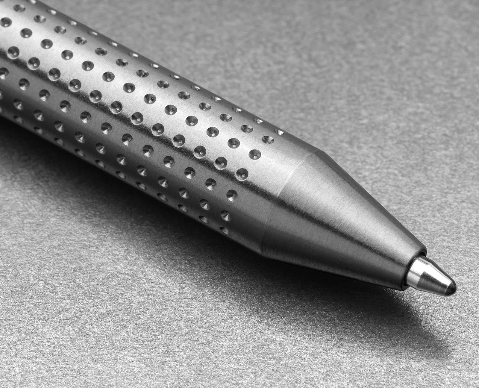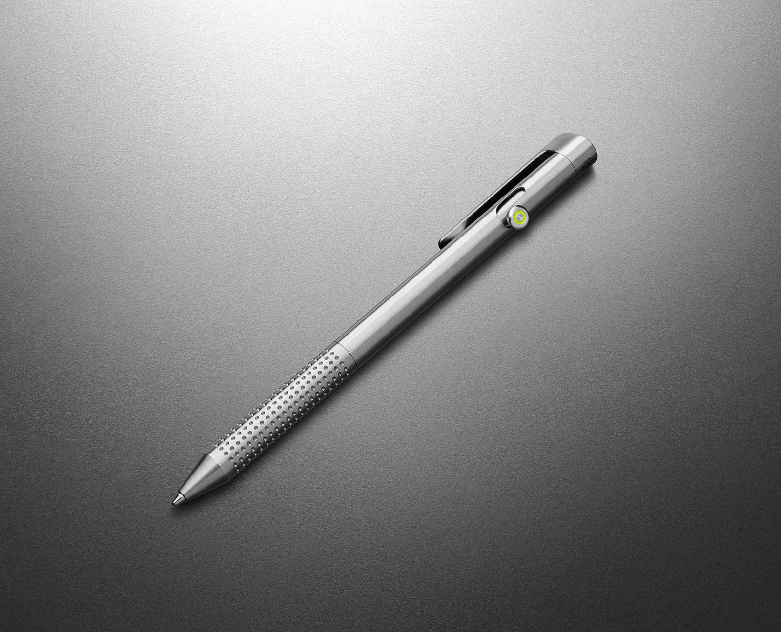 The Kent is their first-ever bolt-action pen. Featuring a 303 stainless-steel barrel, a metal-injection-molded clip and a Parker-style G2-style cartridge, the Kent is ready to roll with you, day in and day out. The bolt action means no clicker sticking out of the top, so the Kent maintains a low profile and opens in one fluid motion. The bolt action prevents accidental opening in-pocket. Nobody digs blowing out a pair of pants with a big ink stain. The bolt will keep you engaged for hours with its ultra-satisfying and snappy action; it provides a great combination of one-handed operation and prevents accidental opening. It’s sort of the best of both worlds.