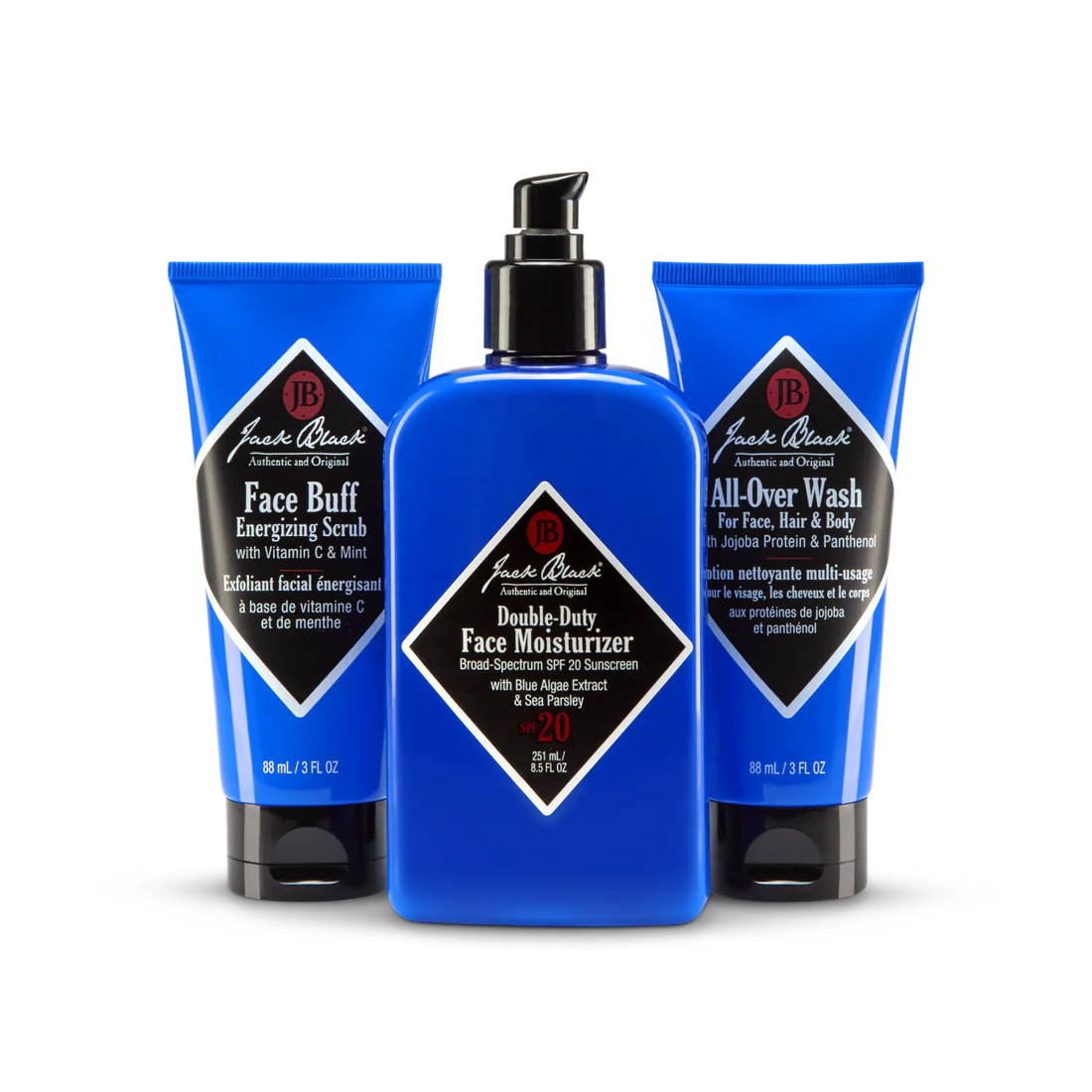 Tis the season to be jolly… AND handsome. Jack the Nutcracker’s got you covered with this trio of all-stars. The Triple Play features three best sellers (including a luxury-size moisturizer with SPF!) to keep your skin cleansed, hydrated, and protected. Grab it as a gift for him or keep it for yourself, Jack won’t judge.