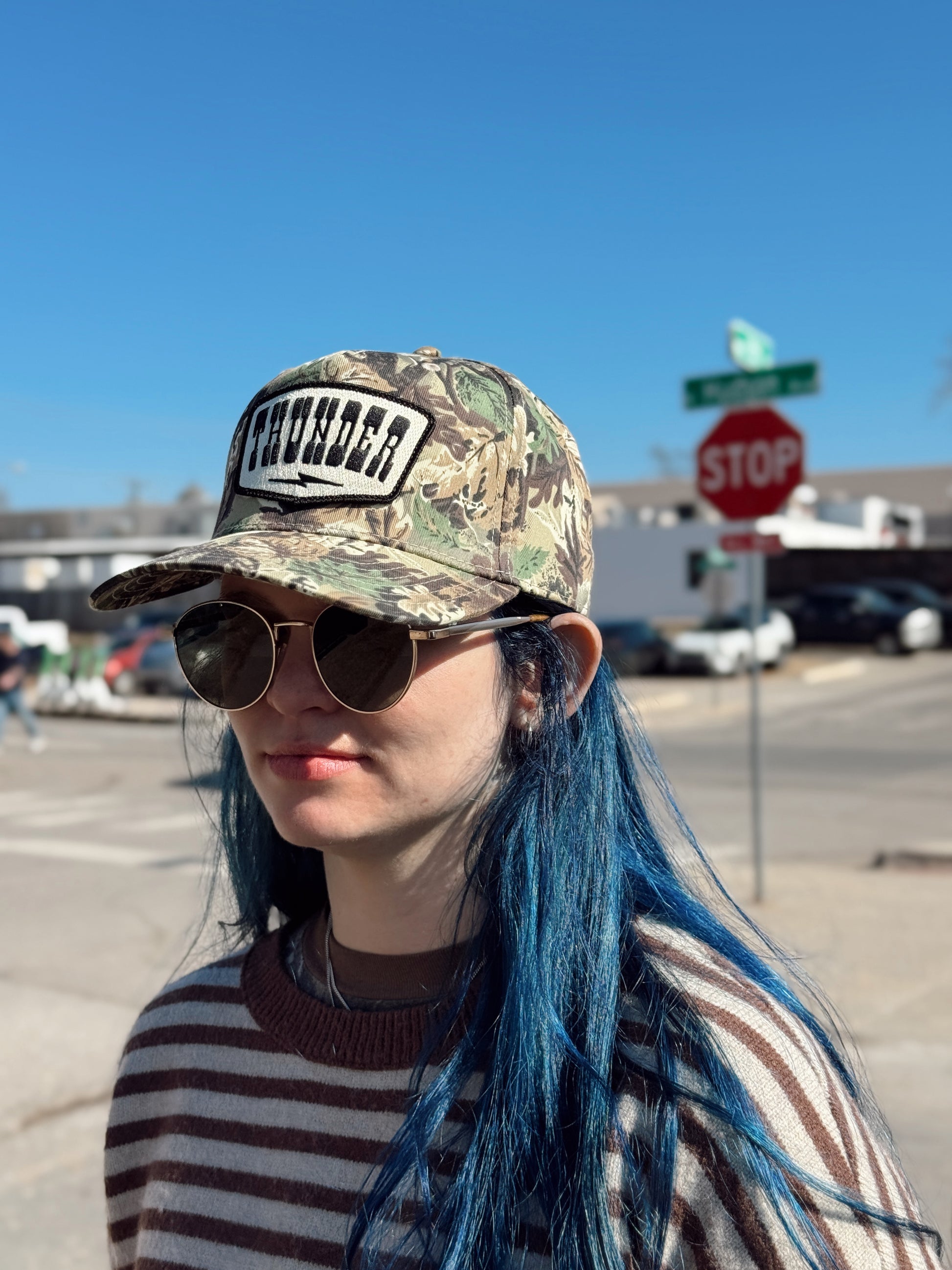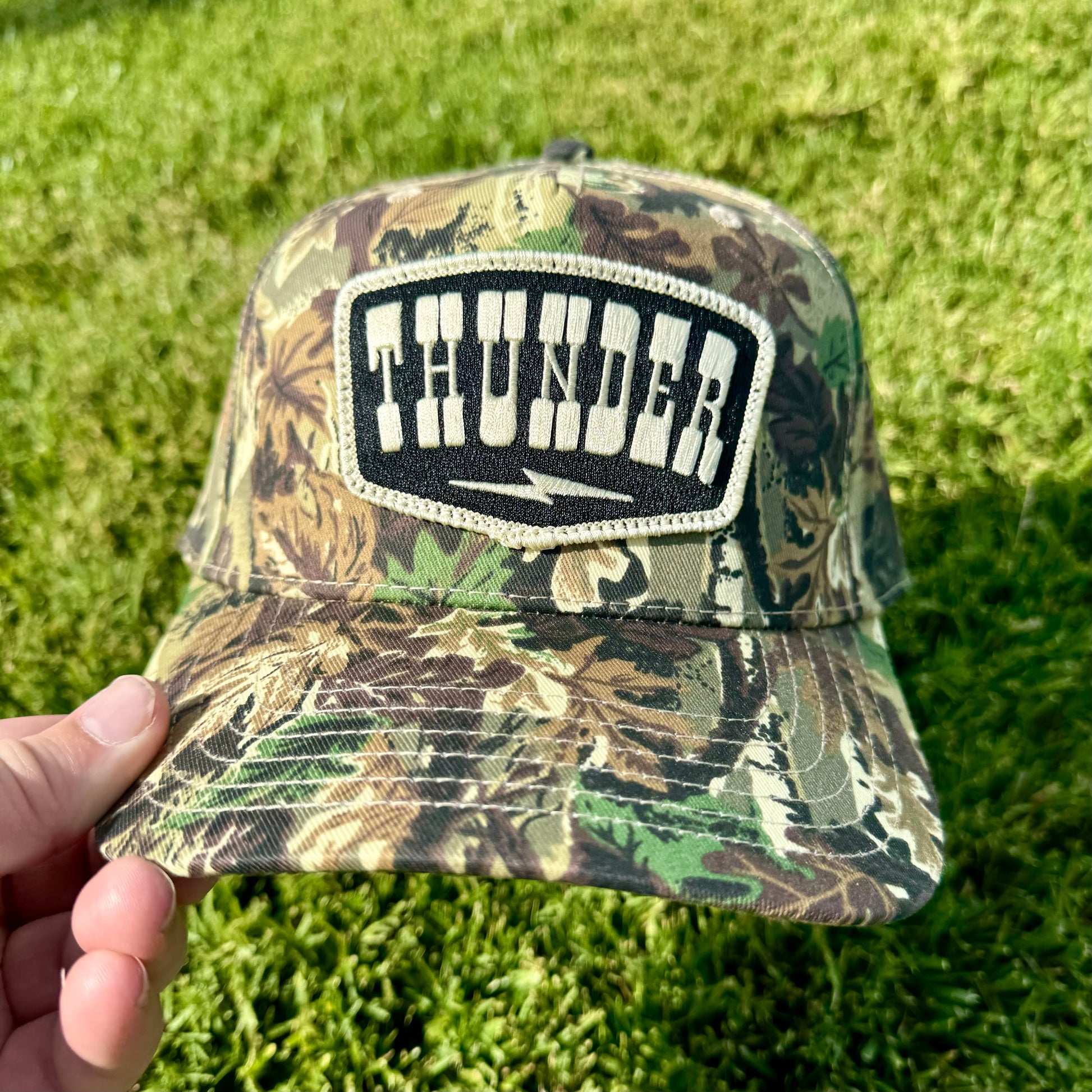 Black and cream Thunder bolt patch on a structured camo hat! Thunder up!!!