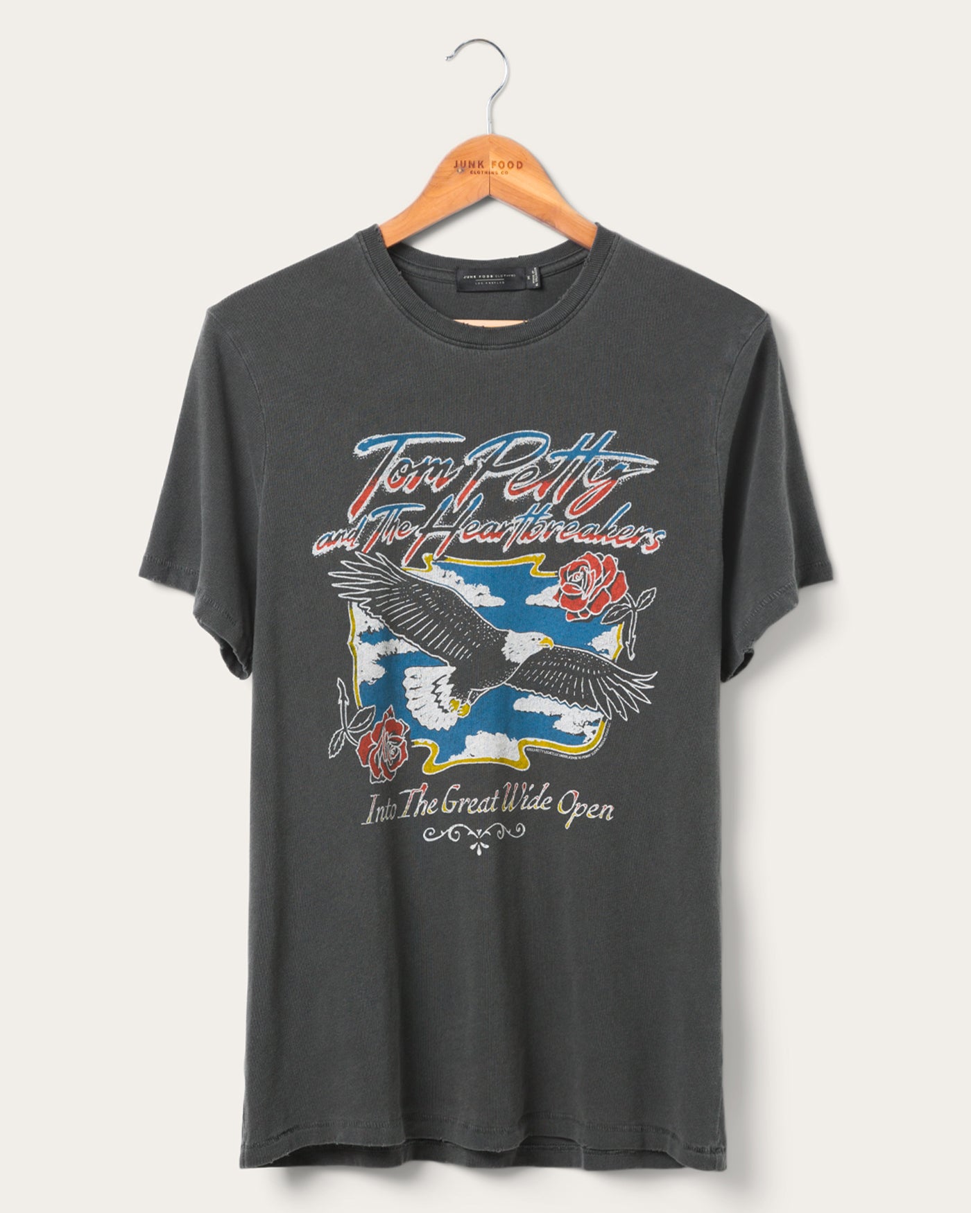 Rock on in style with the Tom Petty Eagle Vintage Tee. This shirt pays homage to the legendary Tom Petty, showcasing an iconic eagle design. Comfortable and cool, it's the perfect choice for music enthusiasts and trendsetters alike. Wear your passion and groove to the rhythm of timeless fashion.