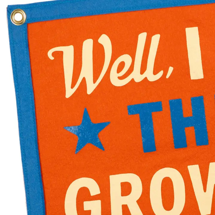 Adulthood: now in felt form. This camp flag captures the most relatable Blink-182 lyric of all time. Perfect for anyone balancing bills, nostalgia, and leftover teenage rebellion. Hang it up and pretend you're totally fine.